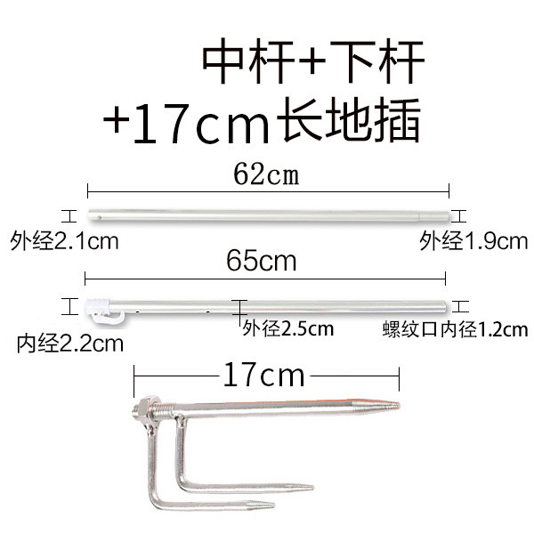 淘户外不锈钢加长加粗特大号渔具遮阳钓鱼伞插三角地插伞脚支架配件