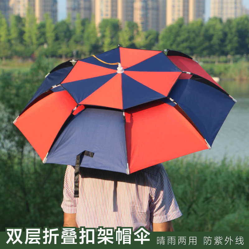 淘宝新款头戴钓鱼伞帽防晒遮阳垂钓雨伞帽双层透气帽伞大号折叠头伞
