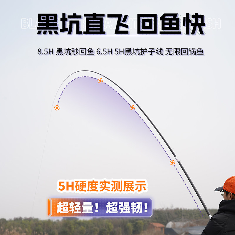 客友至爽轻量黑坑鱼竿是一款专为黑坑竞技设计的专业手竿,采用高强度碳素材料打造,具备8H超硬调性与19调精准腰力,兼顾轻量化与高强度。整竿仅重约80-100克,持感轻盈,长时间作钓不累手。其出色的回鱼性能可轻松飞磕1-3斤的鲫鱼、鲤鱼,适合快速抢鱼场景。导环排列科学,出线顺畅,搭配防滑握把,提升操控体验。无论是黑坑正钓还是休闲台钓,这款鱼竿都能提供精准抛投与稳定控鱼表现,是追求高效作钓钓友的优选装备。