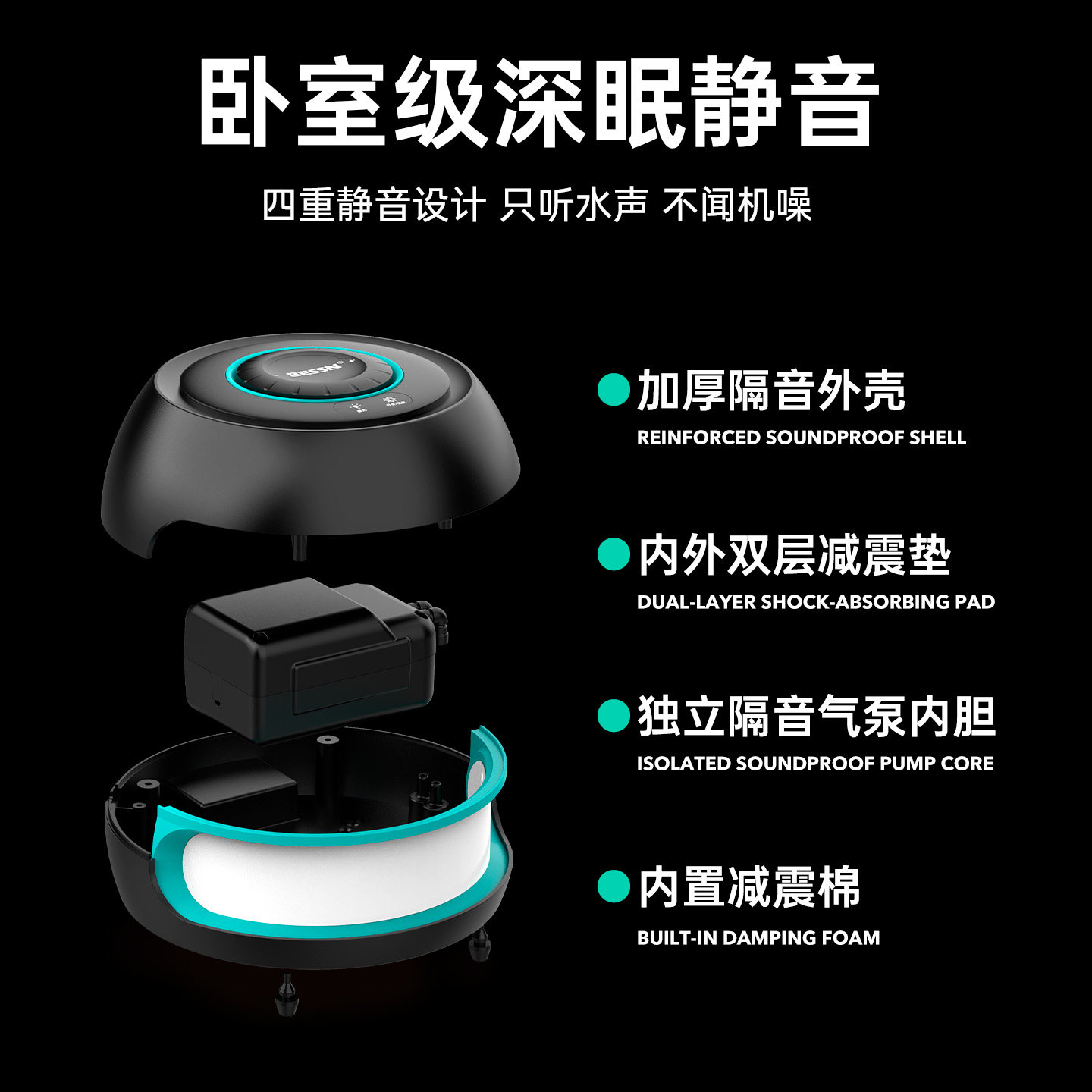 BESSN贝森三级头鱼缸增氧泵,专为现代家居设计,融合实用与美学。采用超静音技术,运行低至25分贝,营造宁静舒适环境。创新三级分流头设计,高效增氧,气泡细腻均匀,促进鱼类健康生长。内置LED氛围灯,柔和发光,夜晚点亮鱼缸,营造梦幻水景,提升家居格调。小巧机身节省空间,适配多种鱼缸尺寸。USB供电,安全节能,操作简单。无论是客厅、卧室还是办公室,BESSN增氧泵都是点缀生活的一抹亮色,让养鱼成为一种享受,兼顾功能性与艺术感,是爱鱼人士的贴心之选。