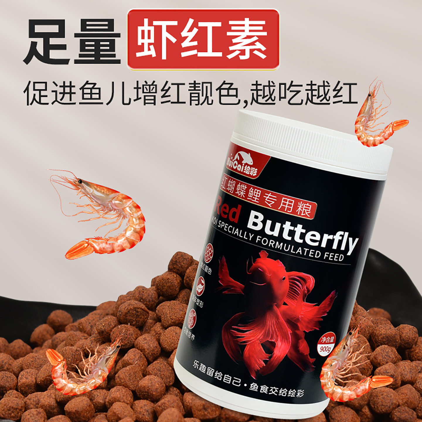 天猫绘彩红蝴蝶鲤专用饲料红色观赏鱼增色鱼食球体熊猫蝴蝶鲤增红鱼粮