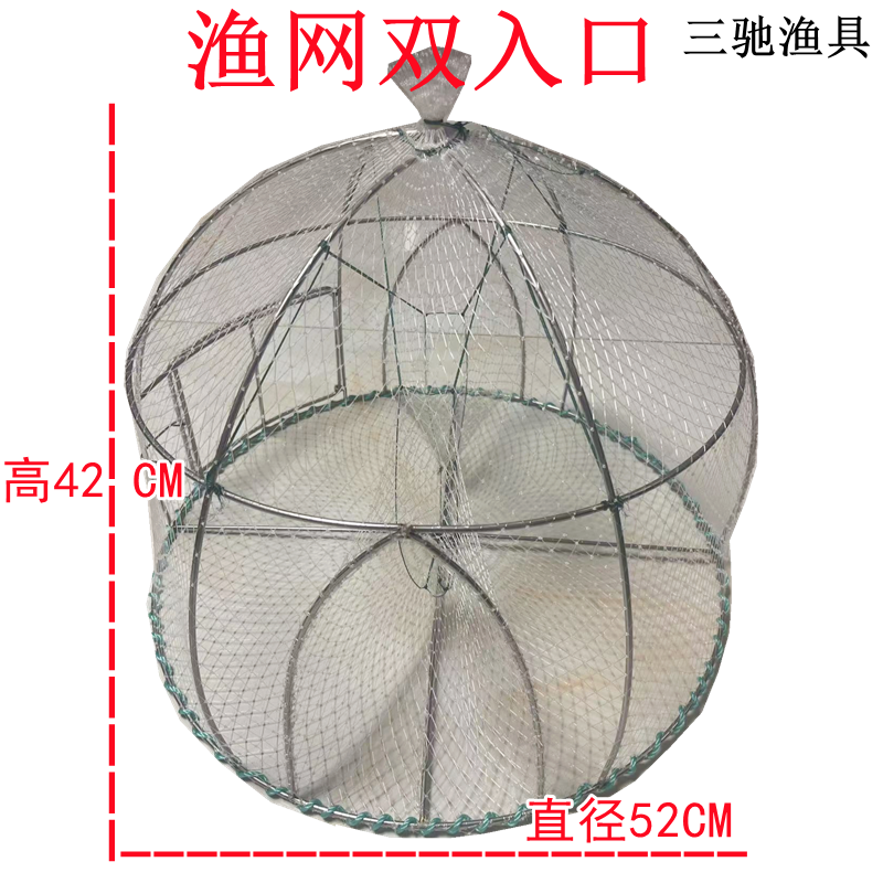 天猫三驰渔具鱼笼篮子鱼笼手工复古不锈钢框架渔网小网孔双倒须入口