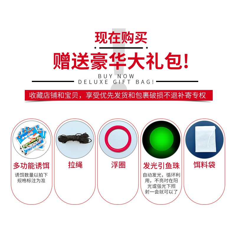 这款多功能捕鱼神器集鱼网、捕鱼笼、手抛网、捕虾笼于一体,专为捕捉小鱼、黄鳝、泥鳅等水生生物设计。采用高强度耐磨材料,结构稳固,透水性好,能有效提高捕捞效率。手抛网轻便易操作,适合浅水区域快速捕捞;自动闭合式鱼笼设计,诱鱼进入后自动锁口,防止逃脱。捕虾笼内置诱饵仓,吸引虾类、泥鳅等钻入。整体轻便耐用,收放便捷,适用于溪流、池塘、稻田等多种水域,是户外垂钓、家庭捕捞的理想工具,兼顾实用性与高效性,让捕鱼更轻松、收获更丰富。