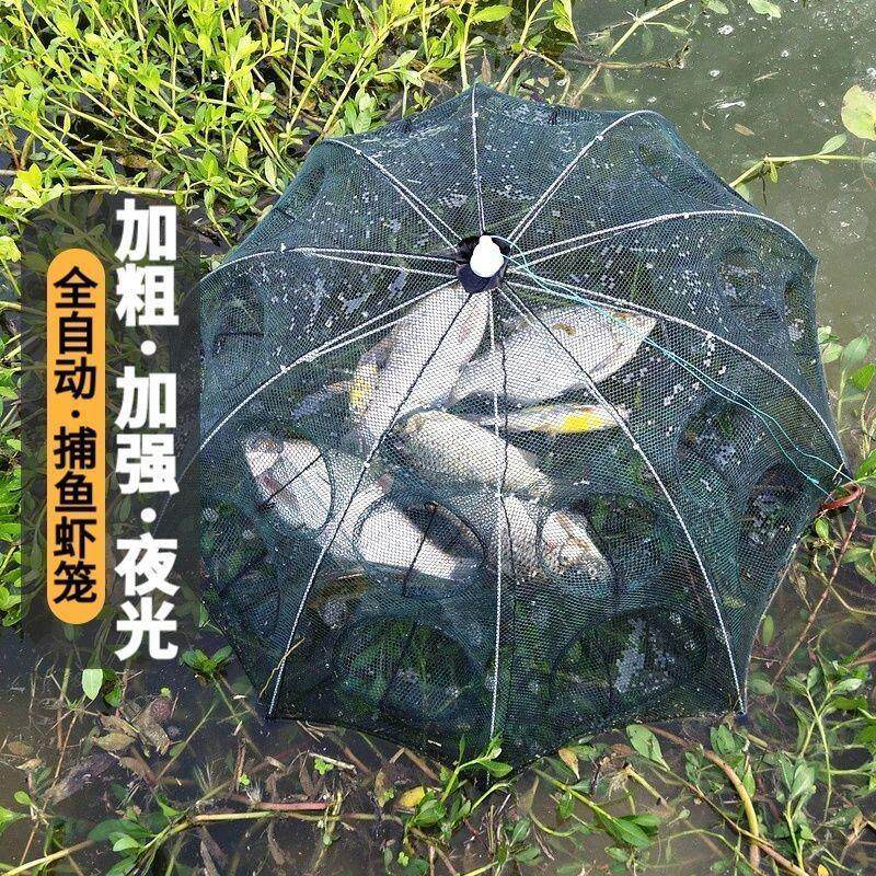 虾笼捕鱼笼加粗伞网自动渔网捕鱼网鳝鱼笼捉虾网诱鱼网带夜光折叠