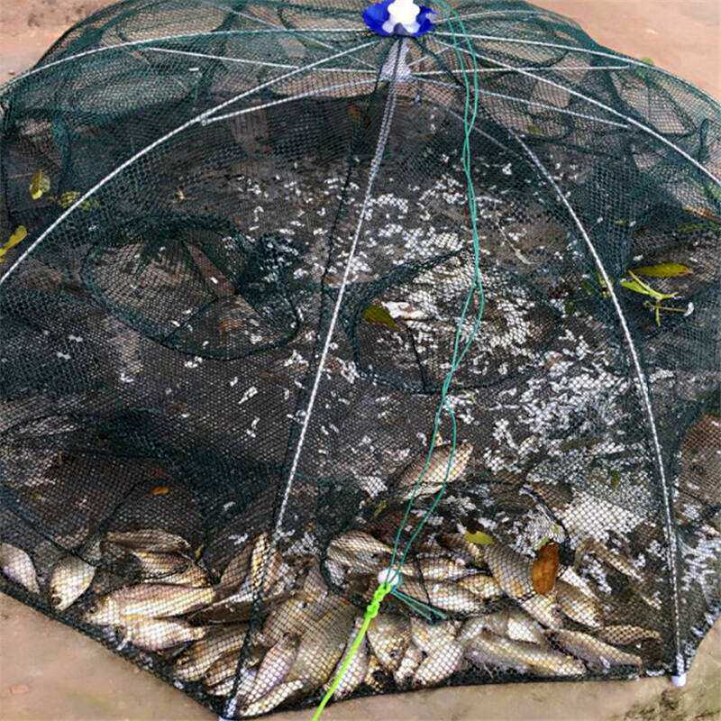 天虾笼捕鱼笼加粗伞网自动渔网捕鱼网鳝鱼笼捉虾网诱鱼网带夜光折叠