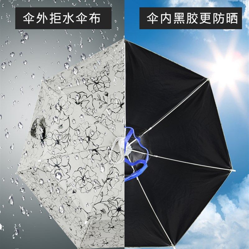 淘宝金钓勾钓鱼伞帽头戴伞帽黑胶折叠头伞大号超轻遮阳透气伞挡雨垂钓