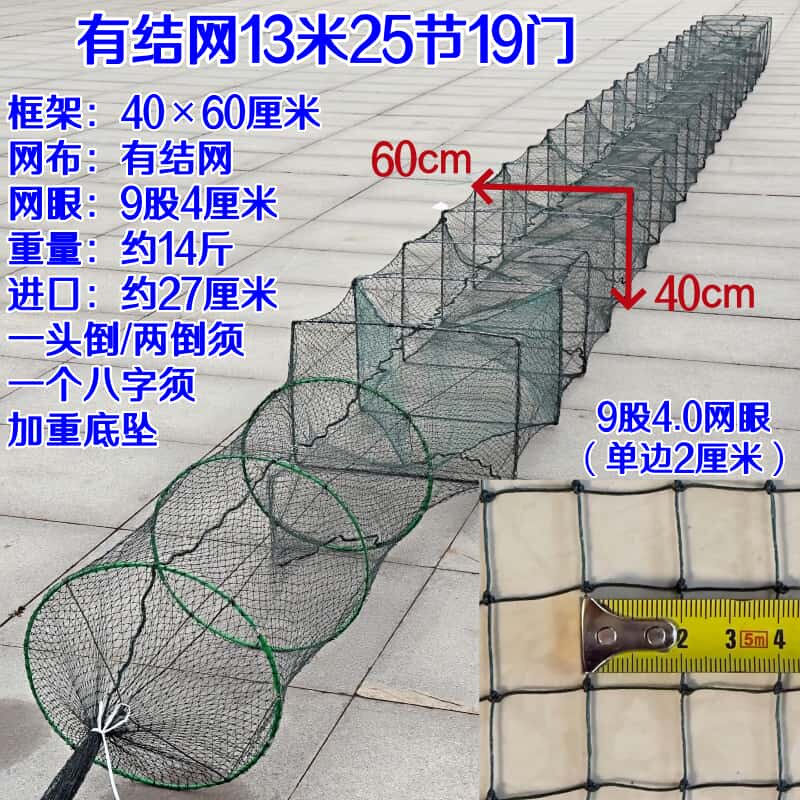 淘宝大框架虾笼捕鱼笼加密加厚一指两指网眼虾网鱼网有结网鱼虾笼子