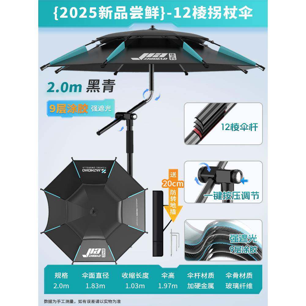 佳钓尼2025新款拐杖钓鱼伞万向大钓伞雨伞户外遮阳防晒专用太阳伞