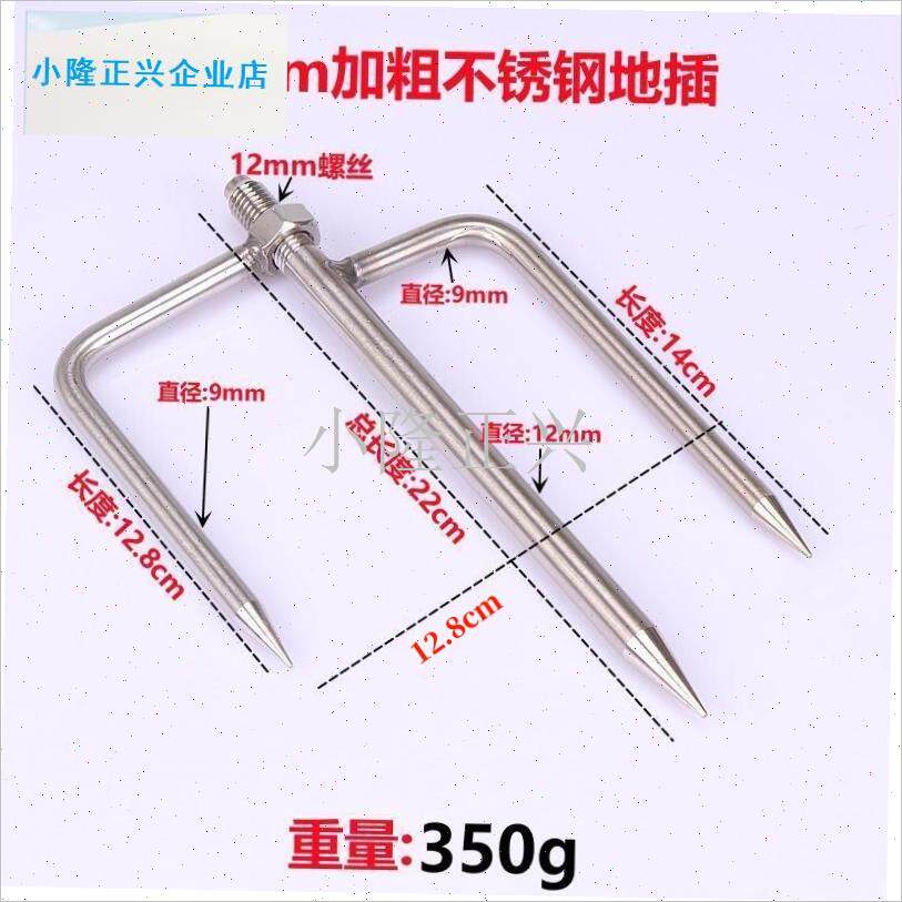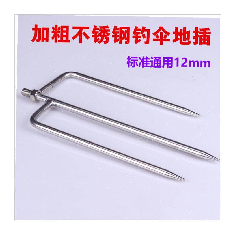 淘宝长加粗钓鱼伞地插通用型s三角插不锈钢插地支架钓伞叉底座配件-