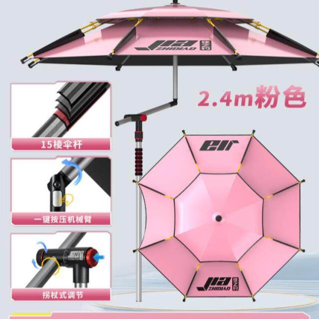 一帆精工新款2.4米钓鱼遮阳伞拐杖双弯机械臂多向调节防雨钓伞