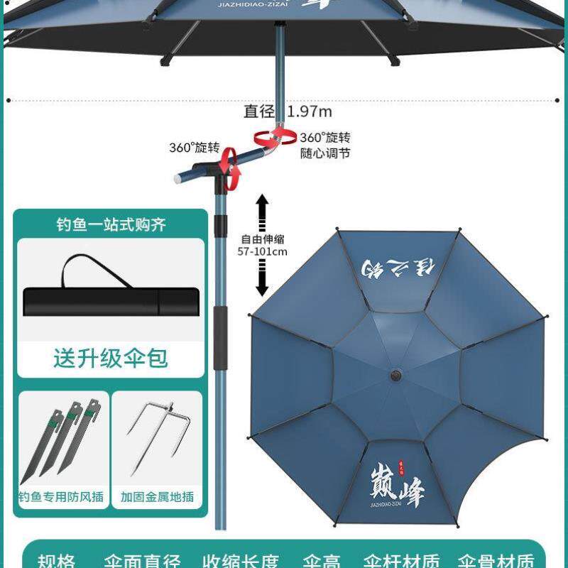 天万向钓鱼伞加厚大伞布防暴雨防风户外防晒多功能便携垂钓伞带地插