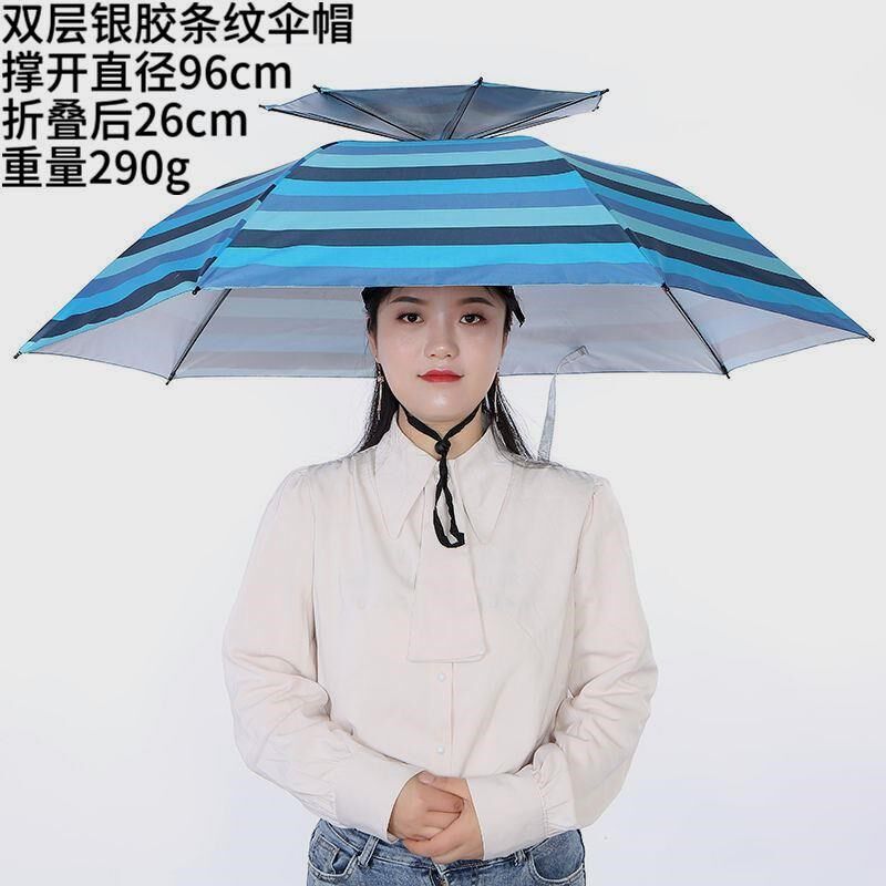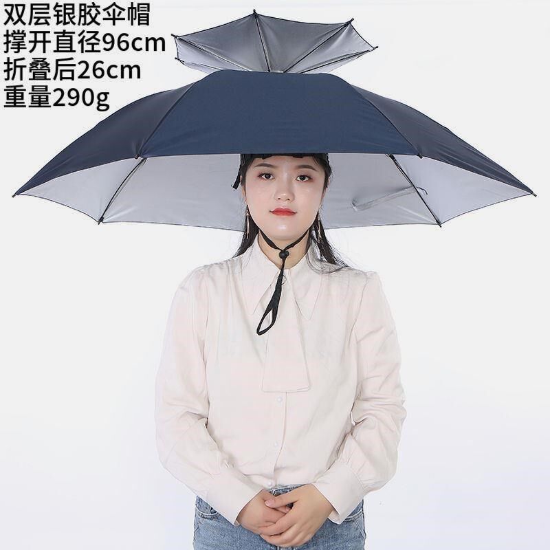 淘升级伞帽头戴式雨伞便携式新型钓鱼伞可折叠双层头顶伞钓鱼遮阳伞