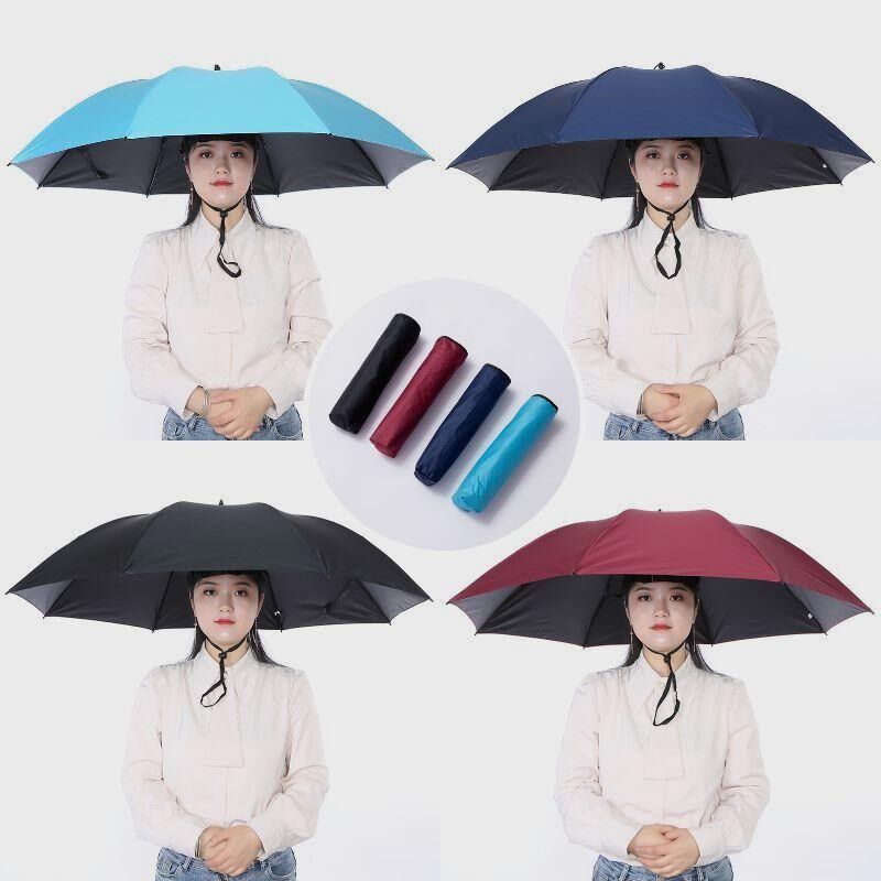 淘头戴式伞帽大号三折头戴雨伞防紫外线防晒遮阳钓鱼伞垂钓户外采茶