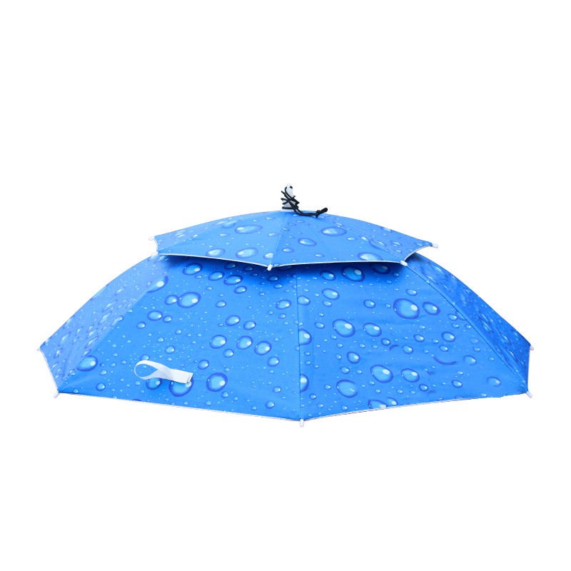 天双层防风防雨钓鱼伞帽头戴式雨伞防晒折叠头顶雨伞帽户外遮阳垂钓