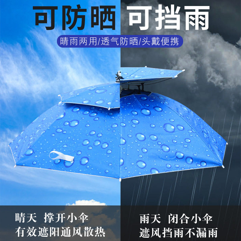 淘新款头戴钓鱼伞帽防晒遮阳垂钓雨伞帽双层透气帽伞大号折叠头伞
