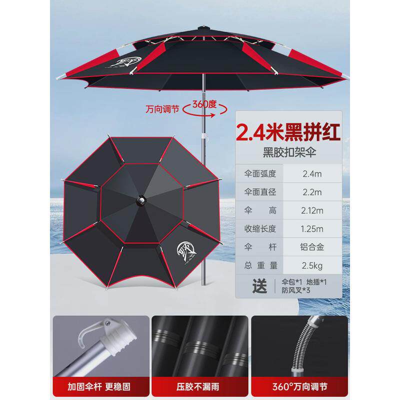 淘一帆精工新款2.4米钓鱼遮阳伞拐杖双弯机械臂多向调节防雨钓伞