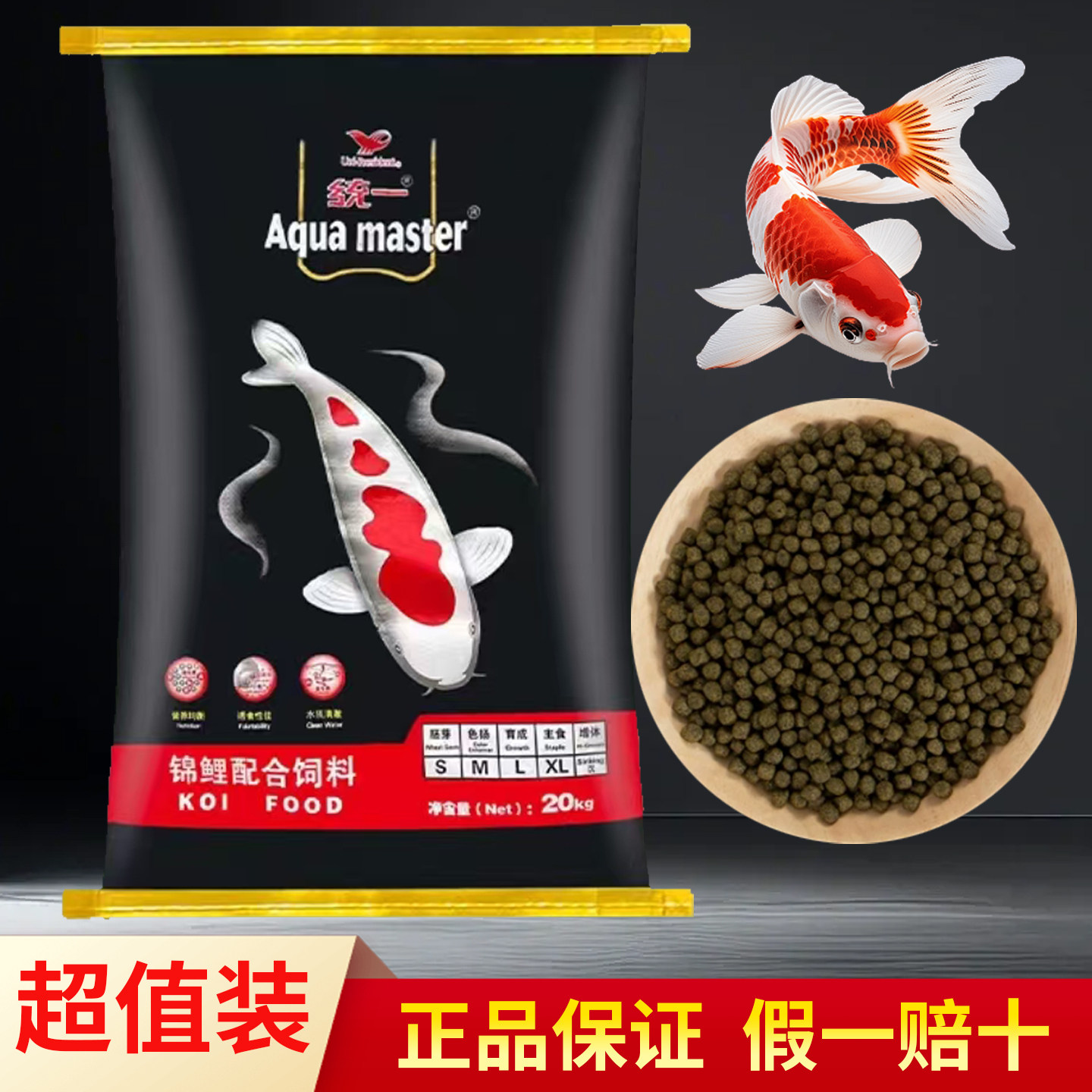 黑统一锦鲤鱼饲料渔场鱼池大型观赏鱼锦鲤鱼粮主食育成色扬增体
