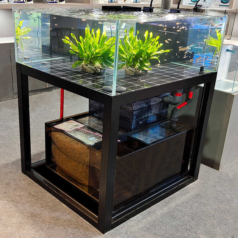 天猫方形溪流缸鱼缸全套岩板60方缸底滤水工业风鸭侧溢流兰寿缸定制