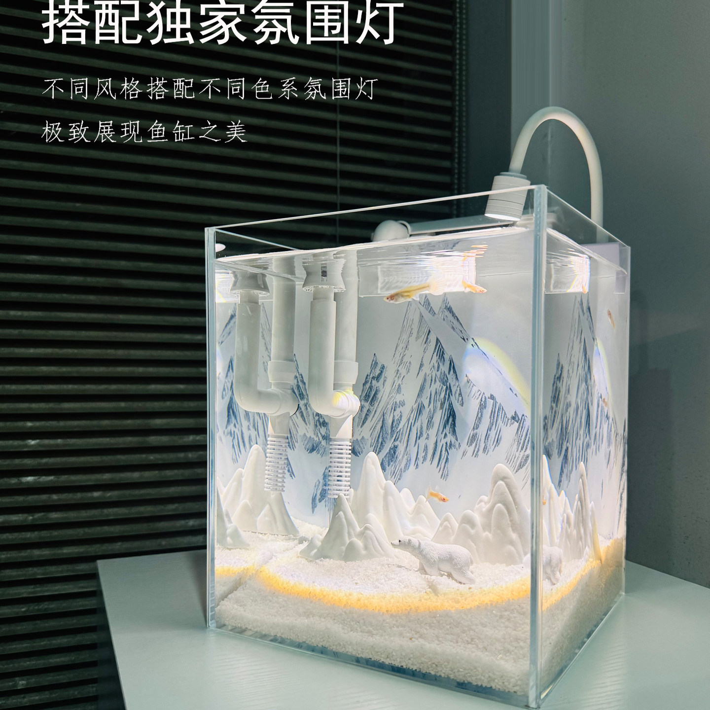 淘宝小智世界雪山造景鱼缸小型客厅家用桌面斗鱼鱼缸免换水超白玻璃缸