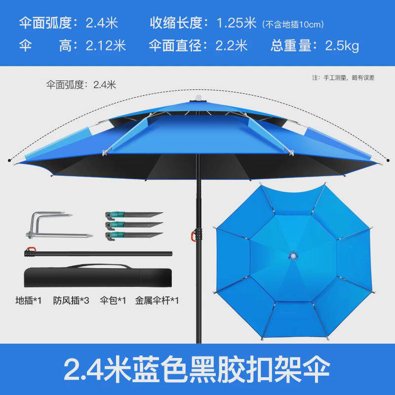 淘宝钓鱼伞万向黑胶超轻双层加厚透气高端垂钓遮阳伞防晒防雨金属中棒