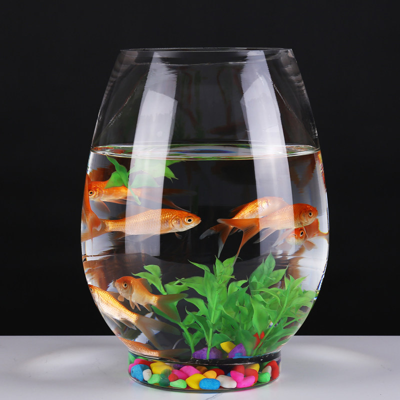 淘宝圆形玻璃鱼缸小型桌面家用客厅金鱼缸创意办公室迷你水培龙蛋鱼缸