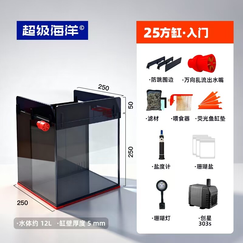 淘宝小海缸珊瑚缸鱼缸超白玻璃裸缸办公室桌面方形缸小型带灯带过滤器