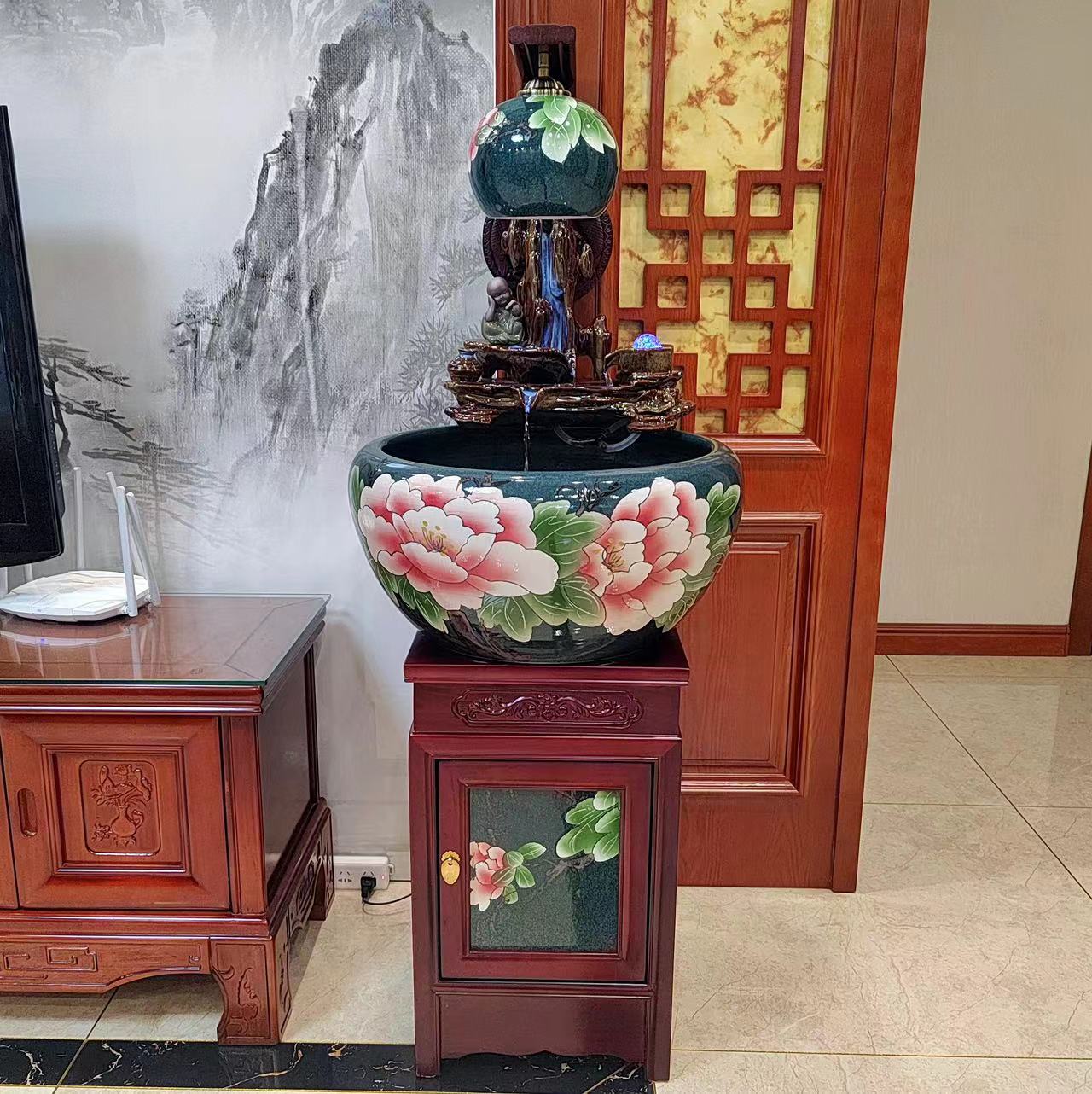 淘宝景德镇陶瓷鱼缸柜式金鱼缸落地鱼缸家用玄关客厅养鱼盆办公室摆件