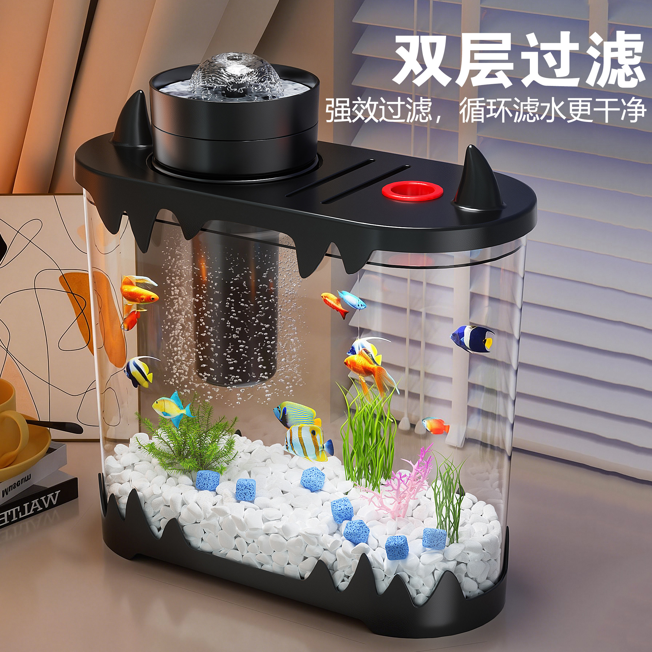 天鱼缸小型客厅2025新款过滤制氧一体机家用造景全套生态桌面养鱼缸