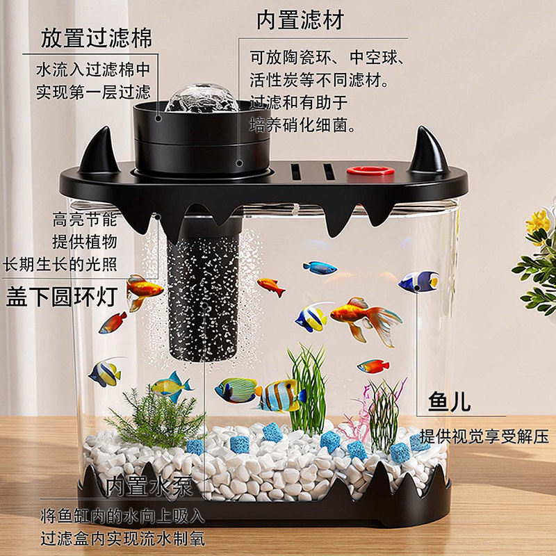 plus桌面超白鱼缸小型家用办公室造景全套自循环免换水生态水草缸