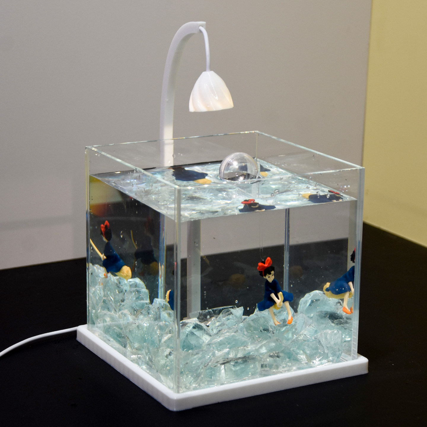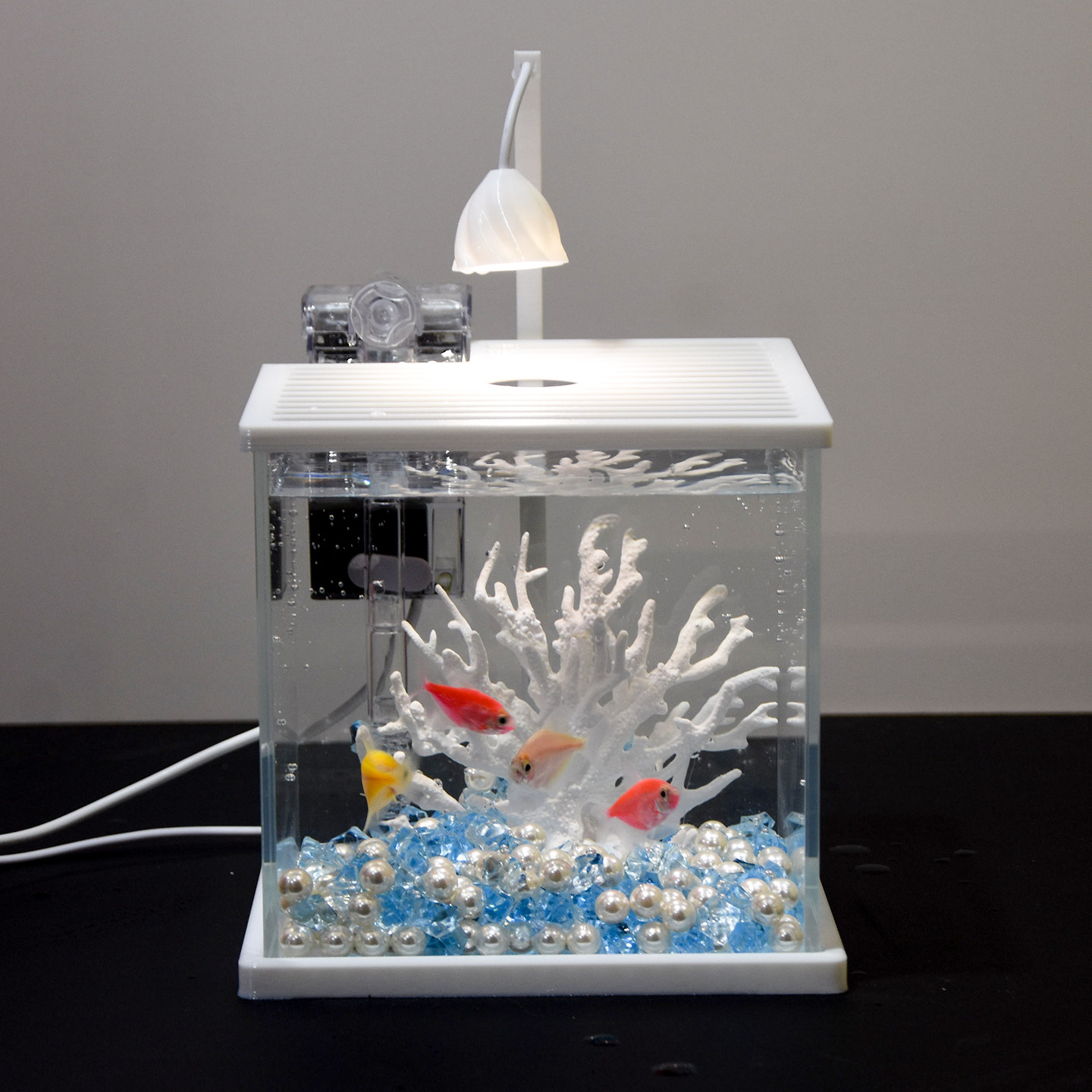 淘宝迷你桌面小型超白玻璃鱼缸玫瑰灯网红鱼缸透明新款斗鱼热带鱼生态