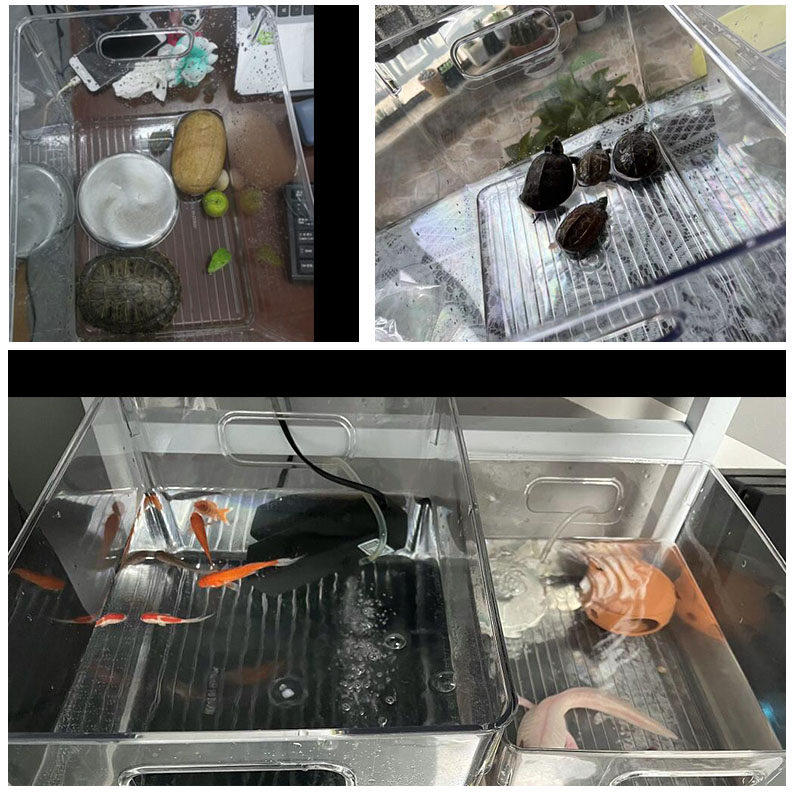 这款手提乌龟缸采用高透明亚克力材质,透光率高达92%以上,呈现超清水质视觉效果,让您清晰观赏爱宠的每一个细节。专为小型水生宠物设计,如乌龟、金鱼等,空间布局合理,兼顾活动与观赏需求。独特防爆工艺处理,安全耐用,有效防止意外破裂;表面经过防起雾涂层处理,长期使用仍保持清晰透亮。配备便携提手,移动轻松便捷,适合居家、办公室或阳台摆放。简约时尚外观,既是实用水族箱,也是家居装饰亮点。易于清洁维护,为您的萌宠提供健康舒适的生活环境。