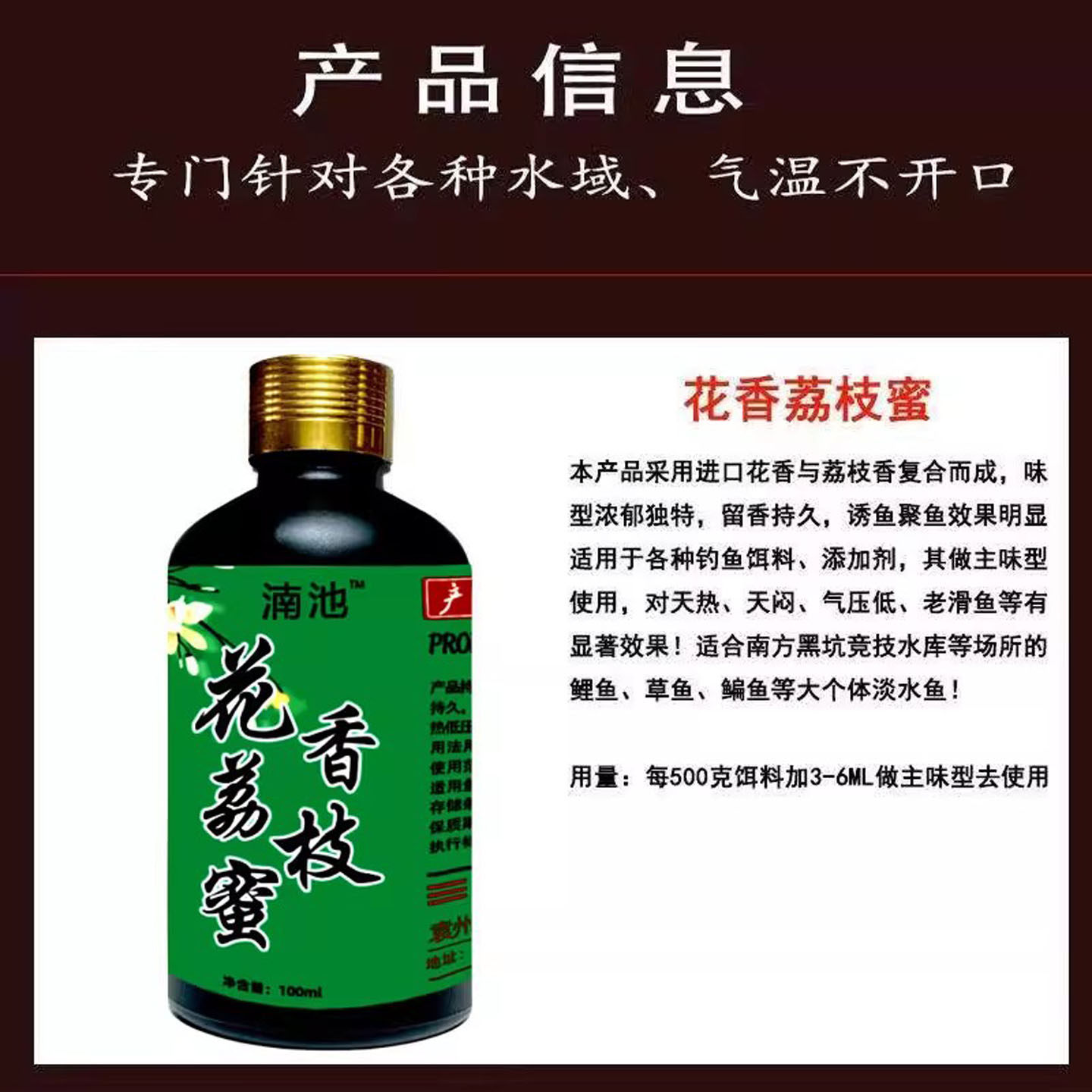 淘宝新品荔花香荔枝蜜高浓度钓鱼小药黑坑鲤鱼滑口鱼克星饵料诱鱼剂