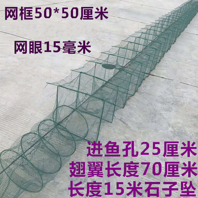 鱼笼虾笼带翅膀特粗线螃蟹笼养殖笼11米22米鱼网有结鱼网地网盖笼
