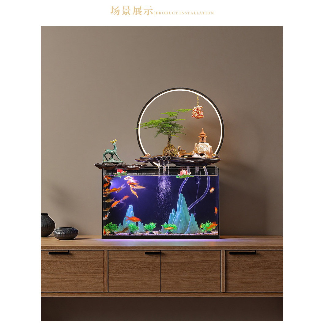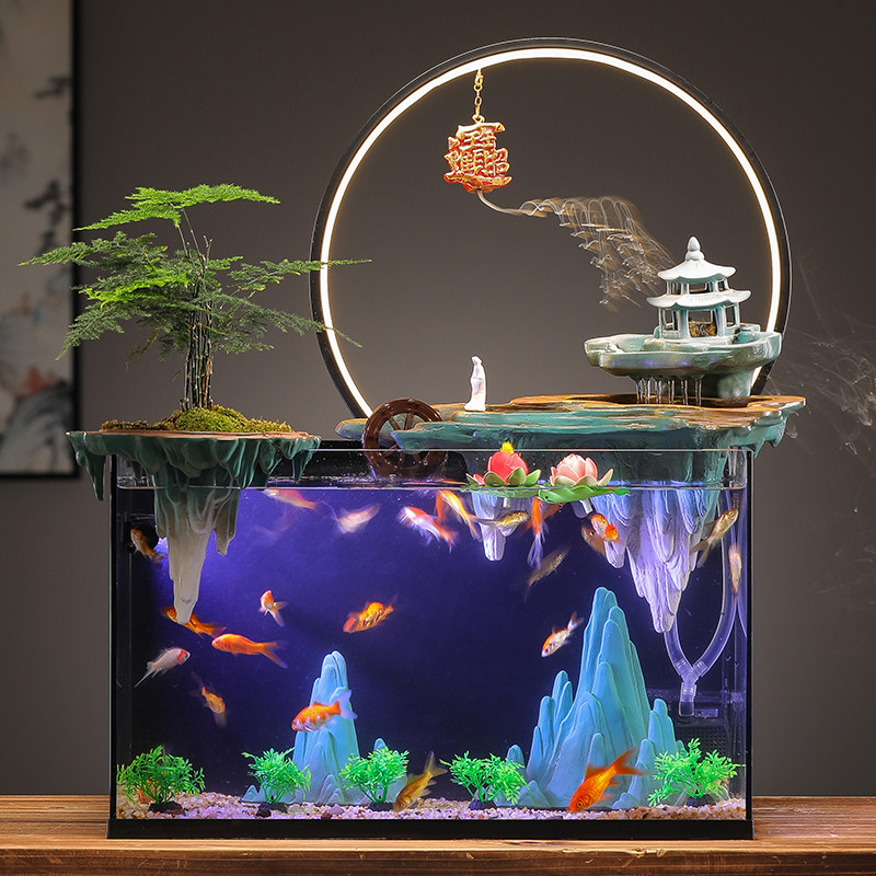 淘宝鱼缸方形客厅小型桌面超白玻璃陶瓷循环增氧过滤景观创意家流水