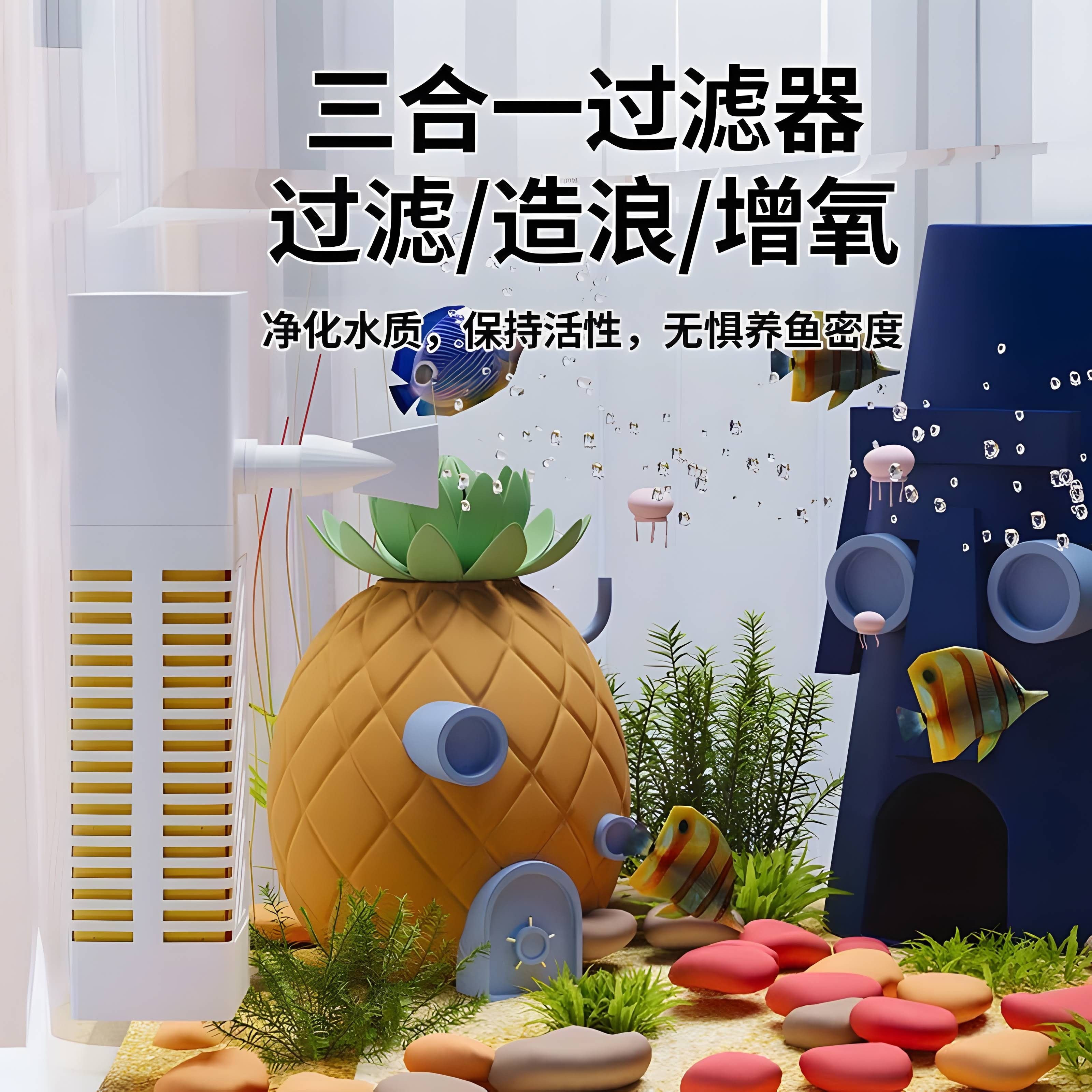2025新款鱼缸过滤制氧一体机,集过滤、增氧、静音运行于一体,专为现代家庭设计。采用高效静音水泵与多层过滤系统,有效净化水质,保持水体清澈,同时智能制氧功能确保鱼儿健康活跃。搭配透明钢化玻璃缸体,质感通透,附赠生态造景底砂与沉木,轻松打造自然水景。顶部配备防尘防跳盖,安全美观,适合客厅、书房或办公桌摆放。小巧精致,容量适中,特别适合饲养金鱼、孔雀鱼等小型观赏鱼。操作简单,维护便捷,是新手与资深鱼友的理想选择,让家居空间增添一抹灵动生机。