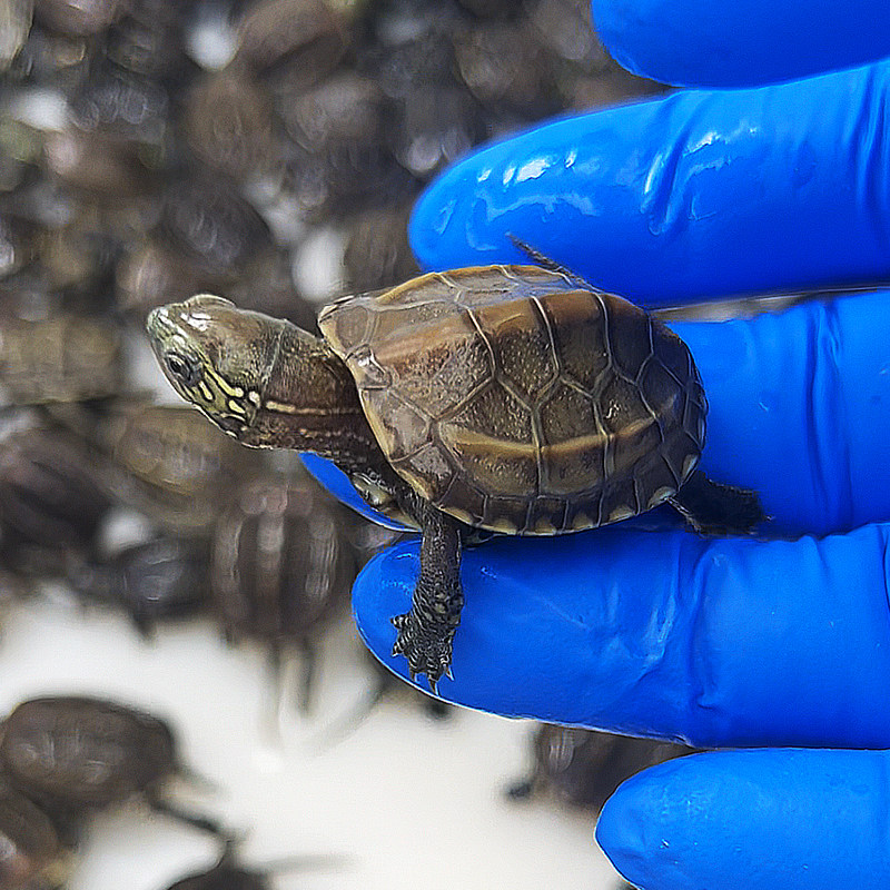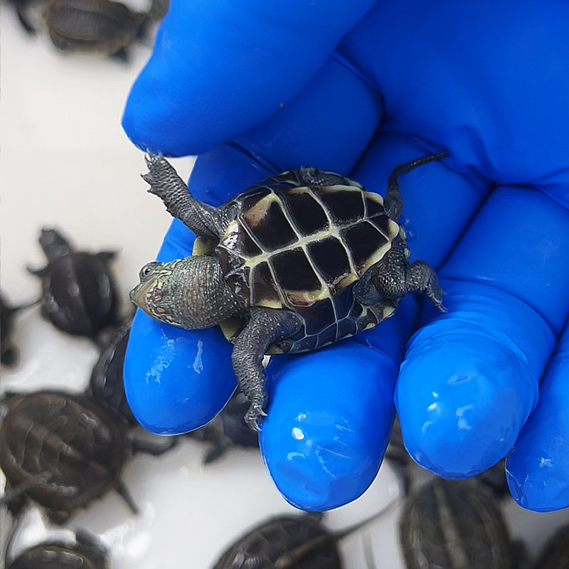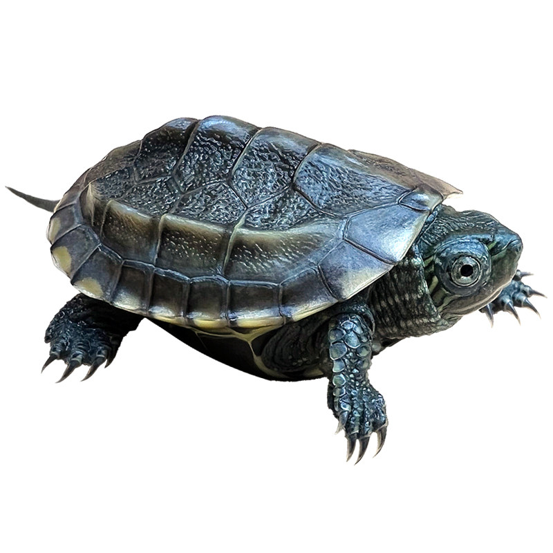 中华草龟,又称金线龟、长寿龟,是我国常见的本土水龟品种,性情温和,适应力强,适合新手饲养。其背甲呈棕褐色,腹甲具黑色斑纹,部分个体在光照下可见金色线条,故称“金线龟”。外塘养殖的幼苗健康活泼,抗病力强。中华草龟寓意长寿吉祥,深受龟友喜爱。与巴西龟、花龟(花珍珠)等外来种不同,草龟更耐寒、生态价值高。墨龟则是雄性草龟成年后全身乌黑的特殊形态,尤为珍贵。作为宠物龟,草龟互动性好,可长期人工饲养,是兼具观赏性、文化意义与生态价值的理想选择。