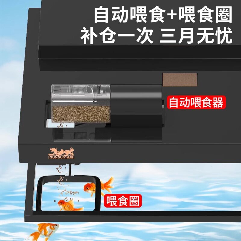 天鱼缸溪流缸客厅桌面侧滤一体成型造景过滤制氧侧过滤生态金鱼缸