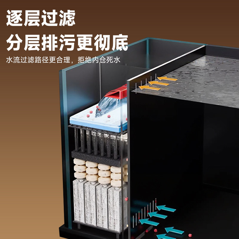 鱼缸溪流缸客厅桌面侧滤一体成型造景过滤制氧侧过滤生态金鱼缸