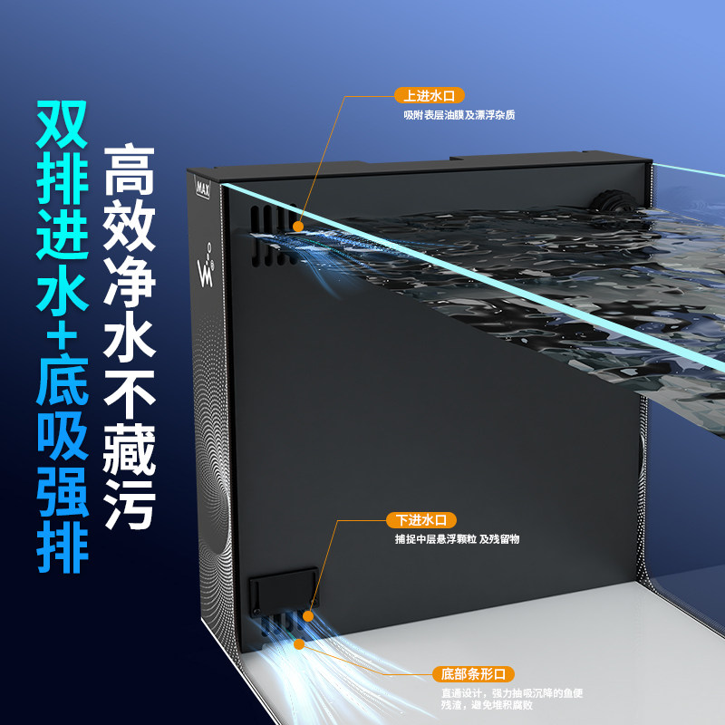 2026年新款侧滤超白玻璃鱼缸,专为现代客厅与桌面造景设计,融合美学与实用功能。采用高透超白玻璃,呈现清澈无瑕的观赏体验,搭配创新侧滤系统,高效静音过滤,内置制氧与循环一体化装置,无需频繁换水,真正实现“懒人养鱼”。简约流线造型适配多种家居风格,桌面款小巧精致,大鱼缸大气典雅,兼顾生态造景与空间装饰。LED智能灯光系统模拟自然光周期,呵护水草与观赏鱼健康。一键操作、低耗节能,是都市人群打造微型生态的理想之选,让自然之美轻松融入日常生活。