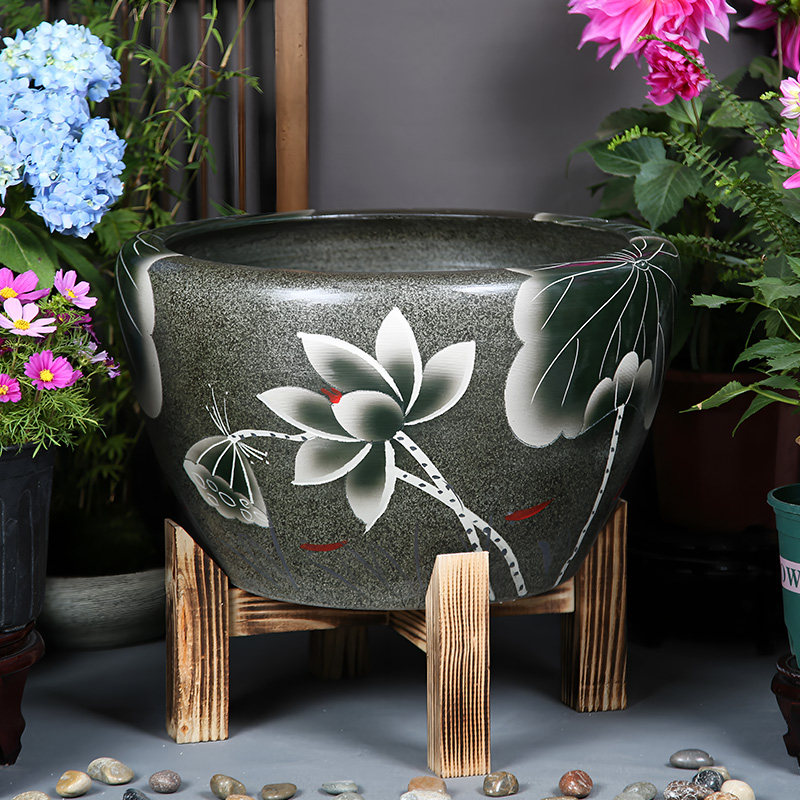 淘宝景德镇陶瓷鱼缸造景荷花缸金鱼缸碗莲花盆落地庭院大型水缸造景盆