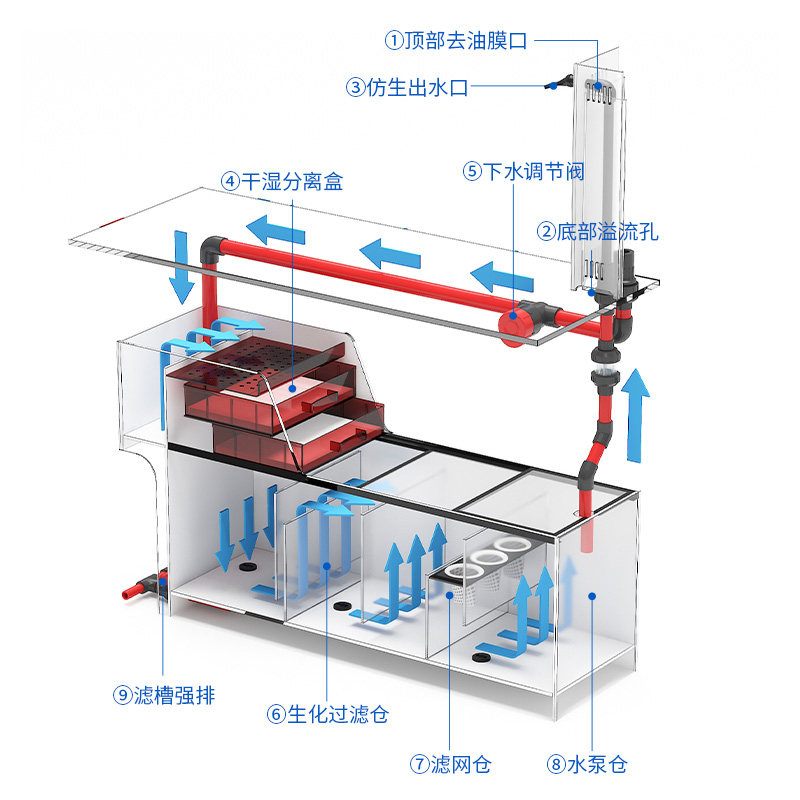 鱼缸开孔75四通三重溢流水位套装底滤管件上下水一体带强排水功能