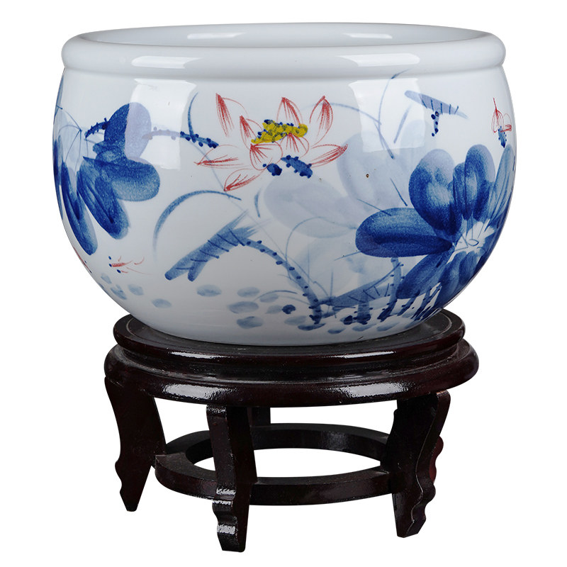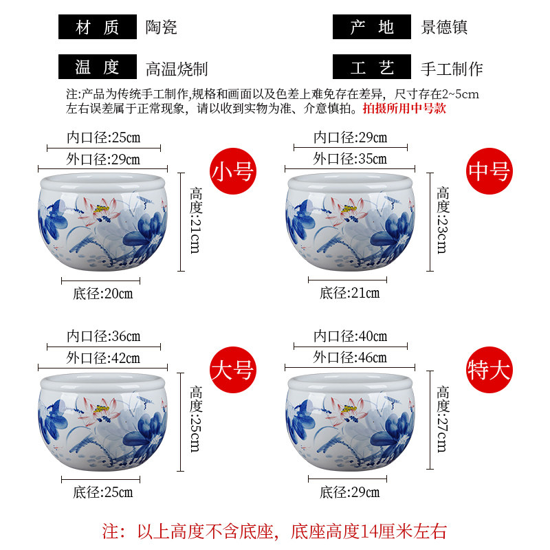 淘宝景德镇陶瓷手绘金鱼缸大号养乌龟睡莲荷花盆客厅书画缸中式风水缸