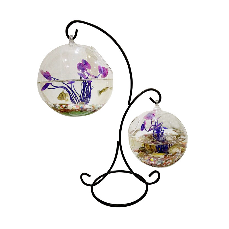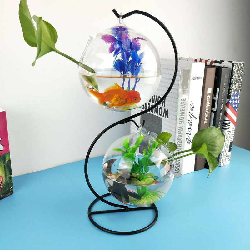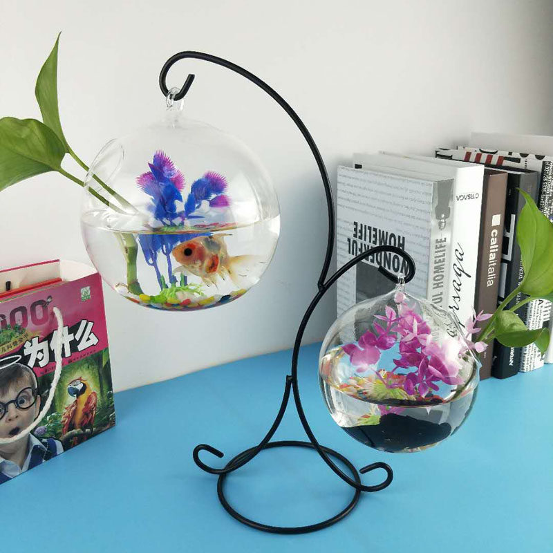 淘宝创意桌面小鱼缸小型悬挂生态圆形透明玻璃迷你金鱼斗鱼缸家用客厅