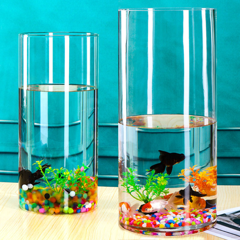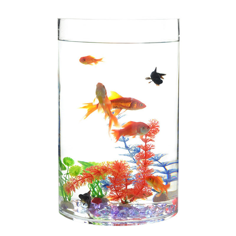 淘宝圆形鱼缸玻璃缸圆柱形金鱼缸小型桌面办公室鱼缸客厅立体超白落地