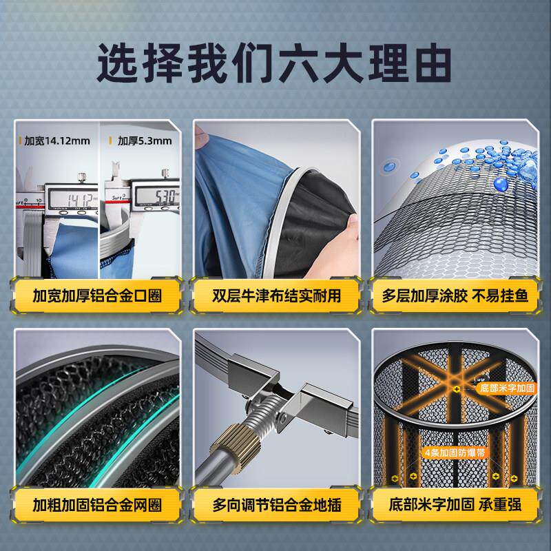 圆形开放式抽拉折叠搬网捕鱼笼渔网捕鱼网神器浮网虾网捕虾篓抬网