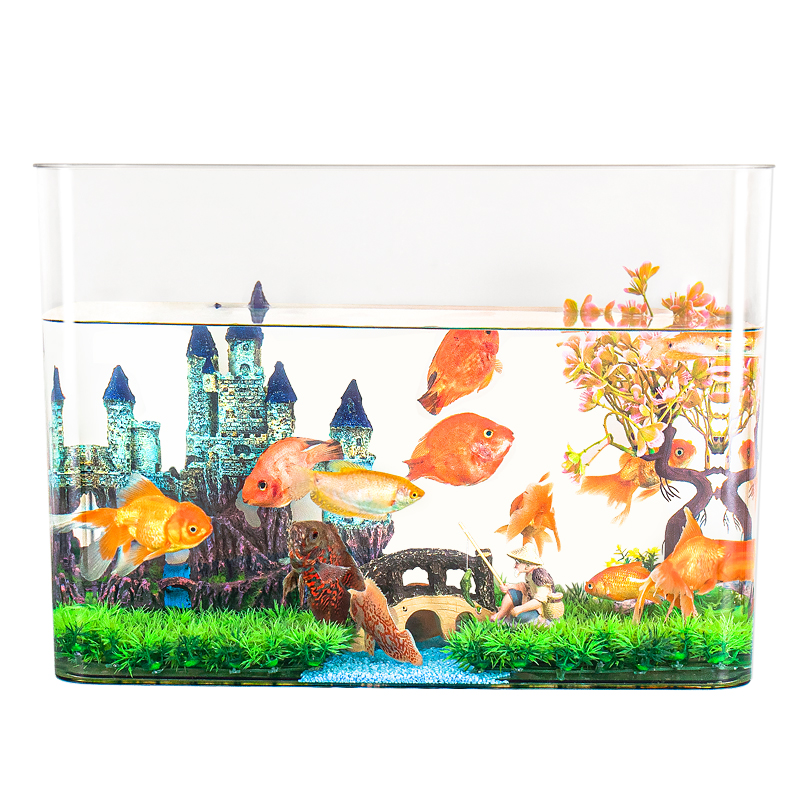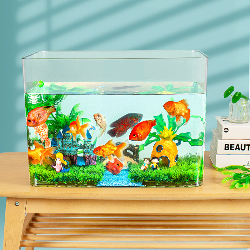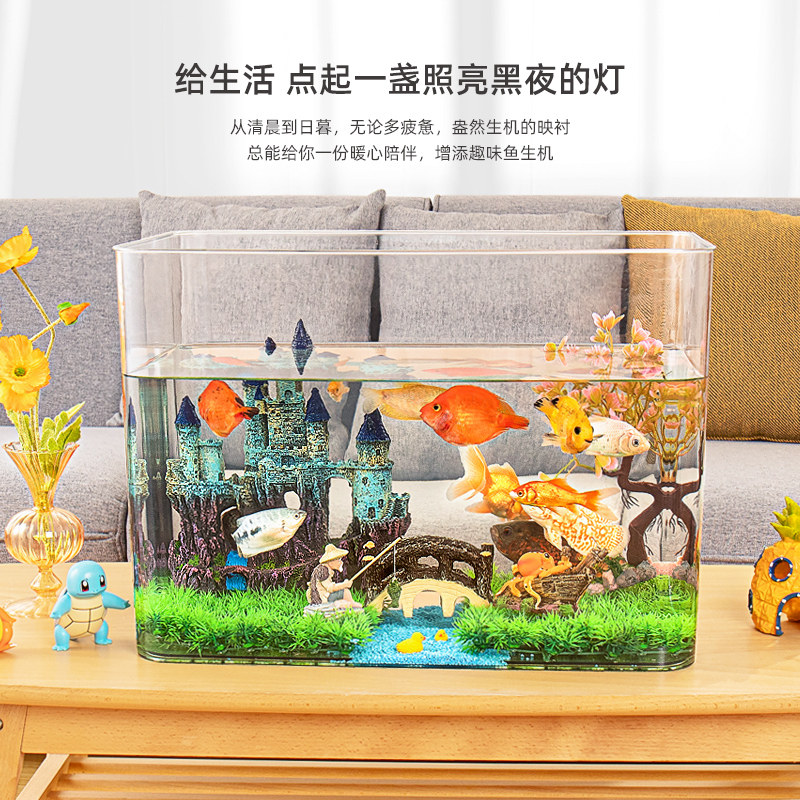 淘宝鱼缸客厅小型家用超白热弯塑料水族箱办公室桌面创意金鱼缸乌龟缸