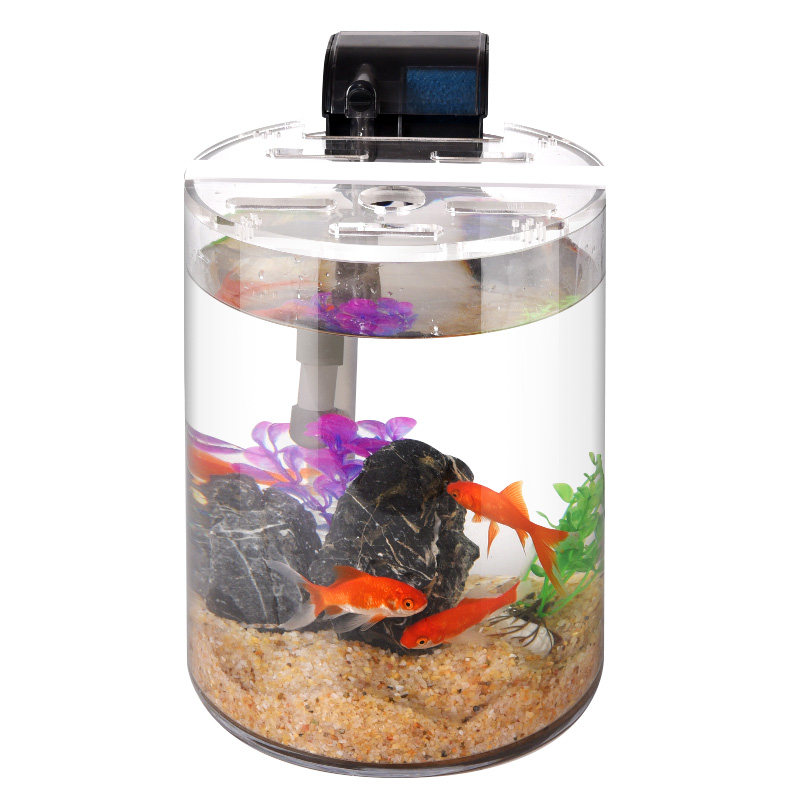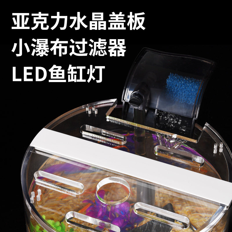 淘宝圆形超白玻璃鱼缸小型桌面创意造景懒人免换水带灯金鱼草缸水族箱