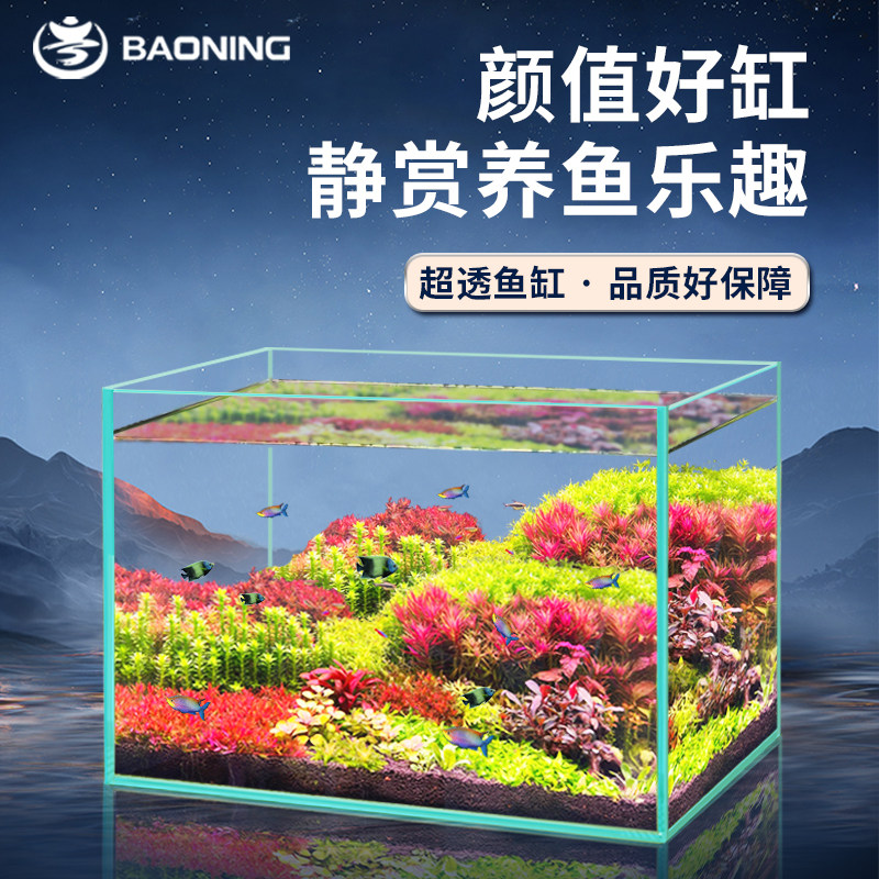 天猫宝宁2026新款玻璃缸金鱼缸家用客厅小型桌面斗鱼缸生态长方形裸缸