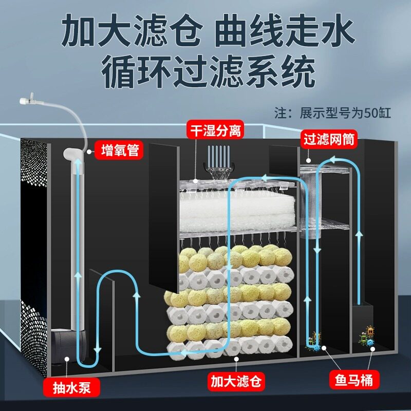 天猫超白背滤鱼缸自循环懒人造景缸小型客厅生态桌面金鱼缸侧滤水草缸