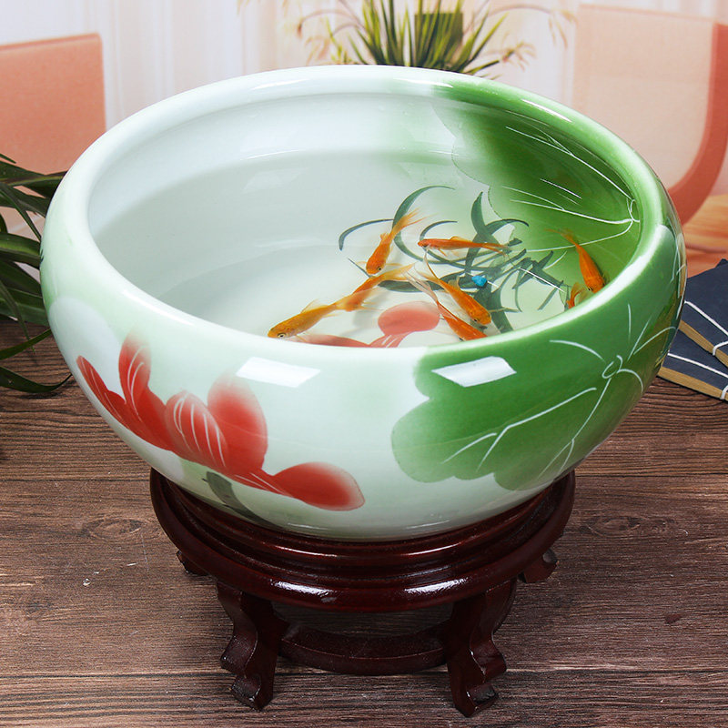 淘宝景德镇陶瓷鱼缸碗莲睡莲盆荷花缸大号乌龟养鱼盆家用流水摆件创意